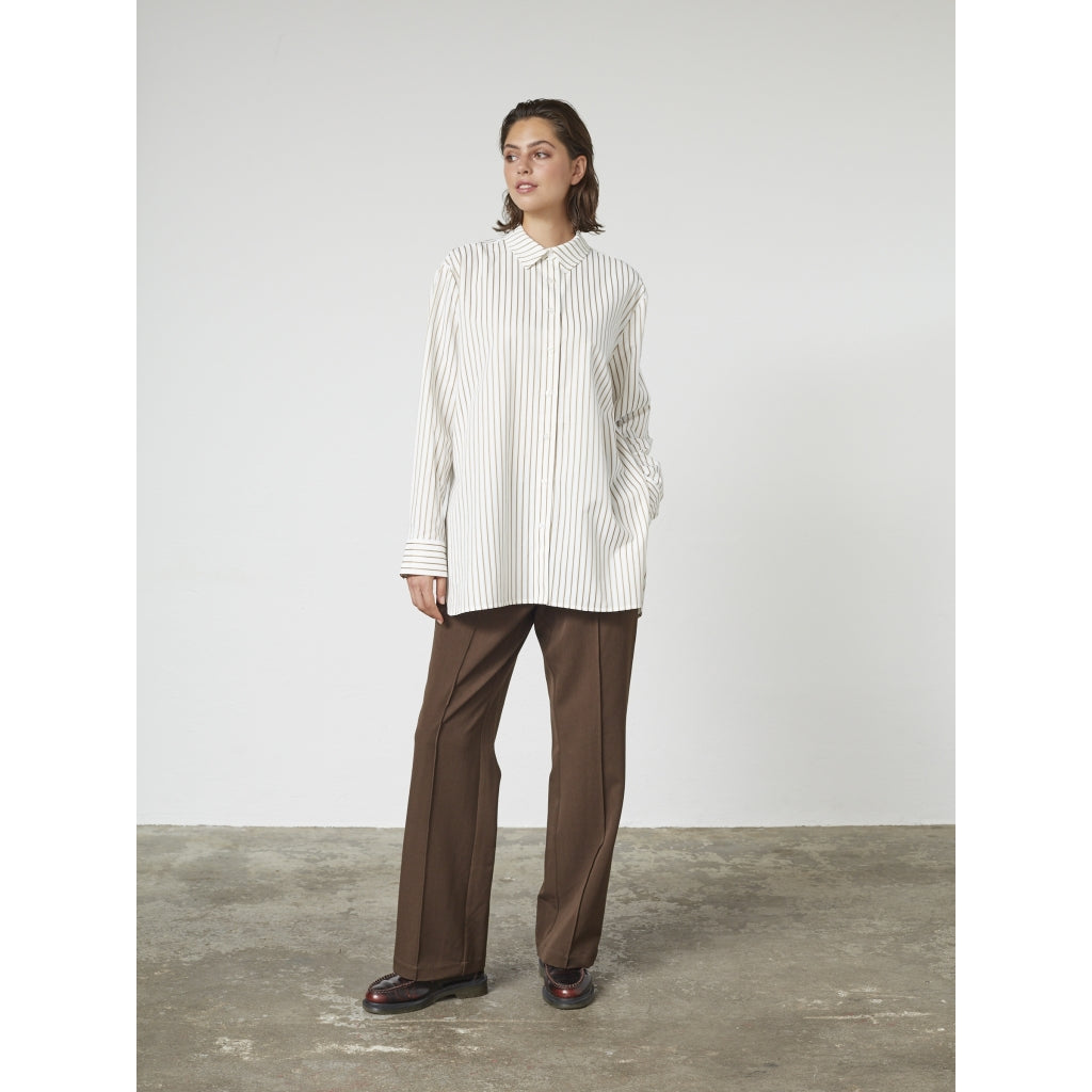 Alexa Shirt kombinerer stil og komfort i et minimalistisk og tidløst design. Den er omhyggeligt skræddersyet af kvalitetsmaterialer og har en ren, struktureret silhuet, der gør den velegnet til både arbejde og fritid. Justerbare manchetter og en klassisk krave tilføjer et elegant touch og sikrer en perfekt pasform.
