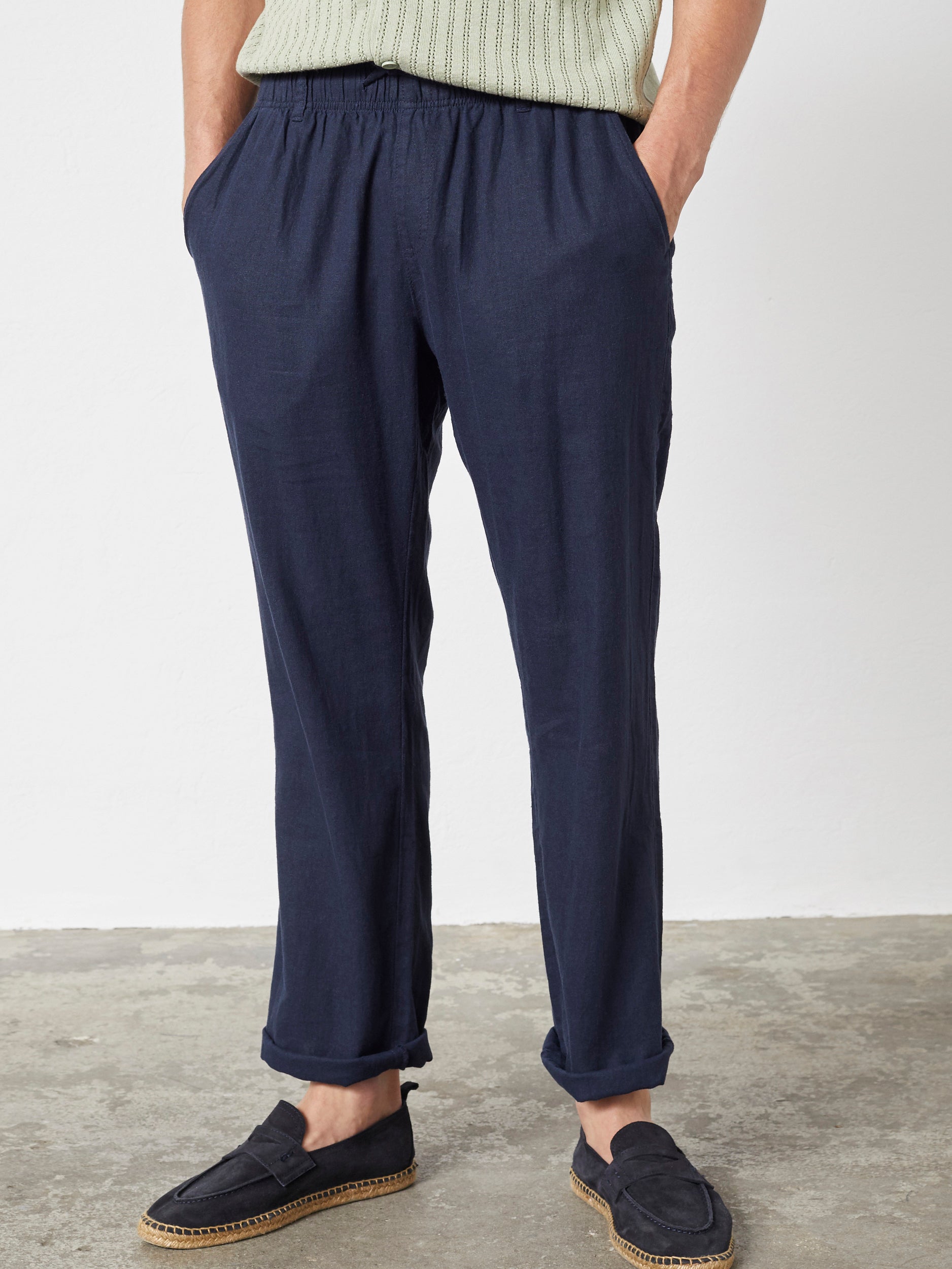 Let og afslappet herrebuks i hørblanding med et luftigt, sommerligt udtryk. Designet med elastisk talje og blød kvalitet, der giver høj komfort og fungerer perfekt til varme dage.