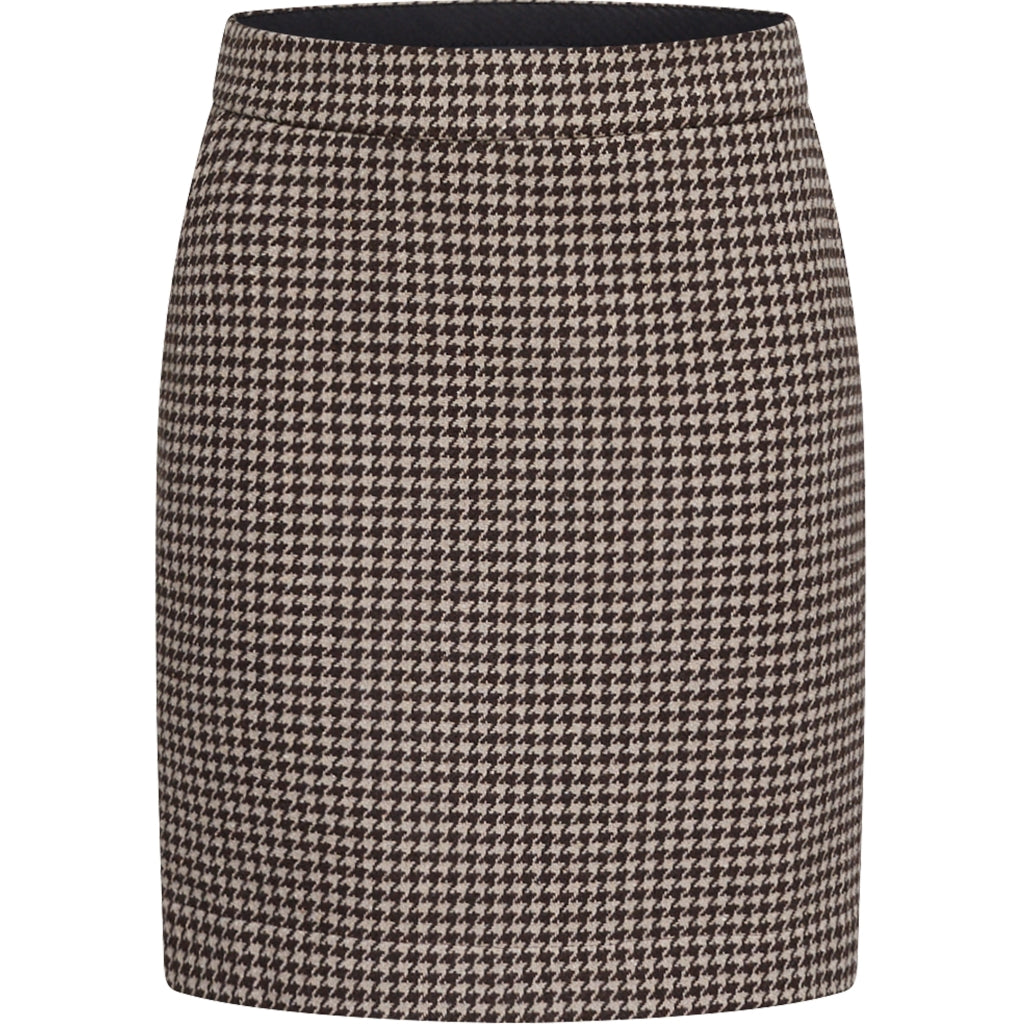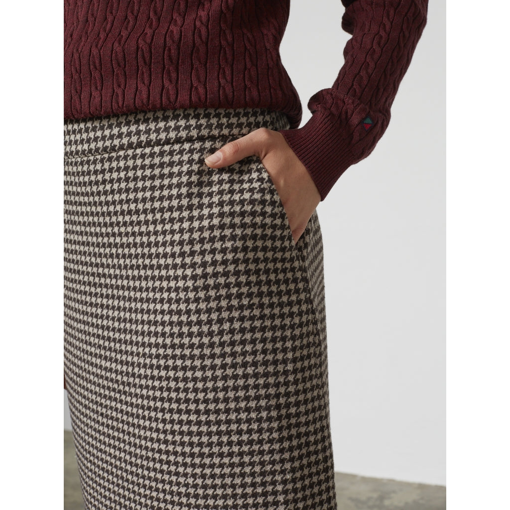 Nadia nederdelen har et klassisk ternet mønster og en lige, enkel pasform. Den bløde uldblanding gør den behagelig til hverdagsbrug og nem at kombinere med både strik og skjorter.