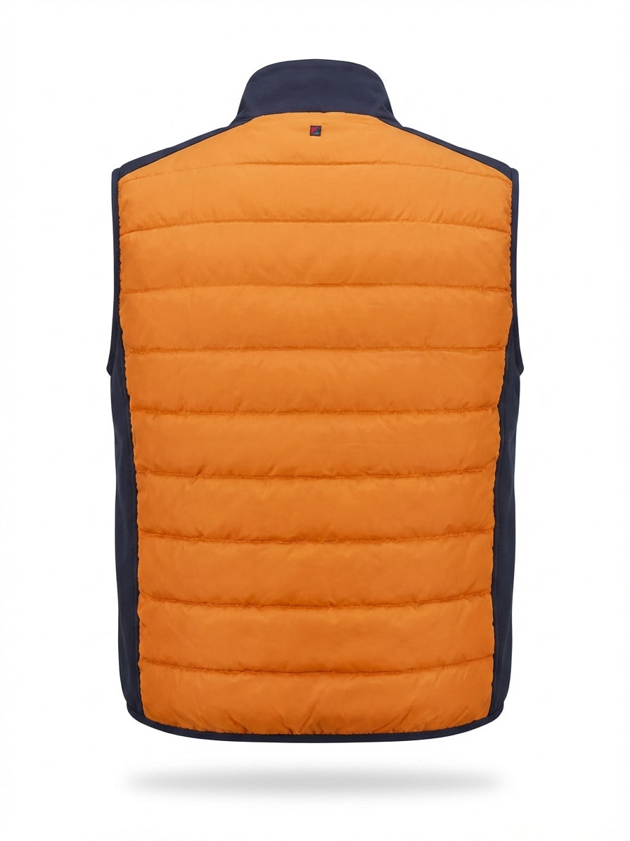Let og funktionel quiltet vest i 100% polyester med ståkrave og lynlåslukning. Et praktisk mellemlag til skiftende vejr med et enkelt, maritimt udtryk.