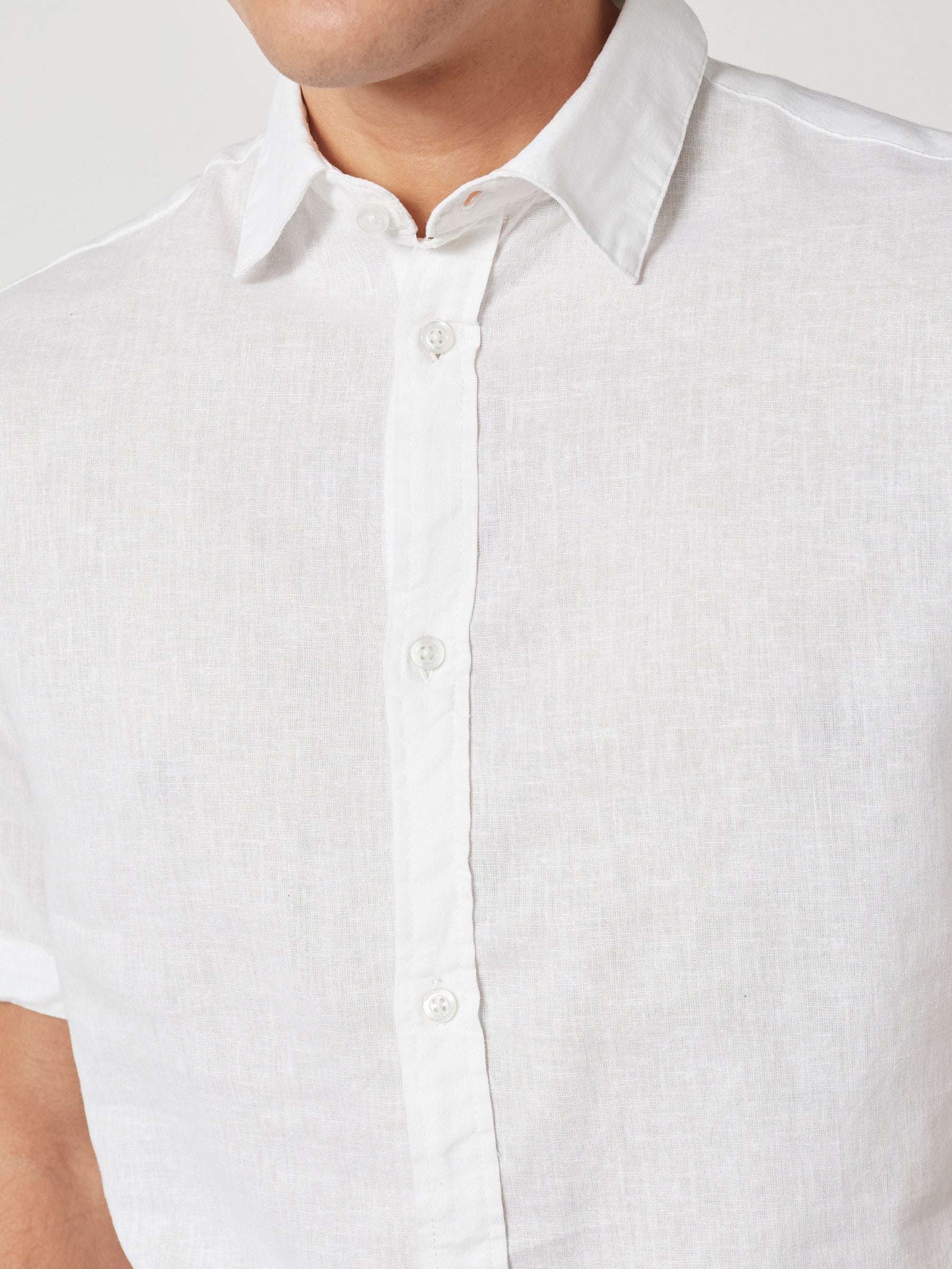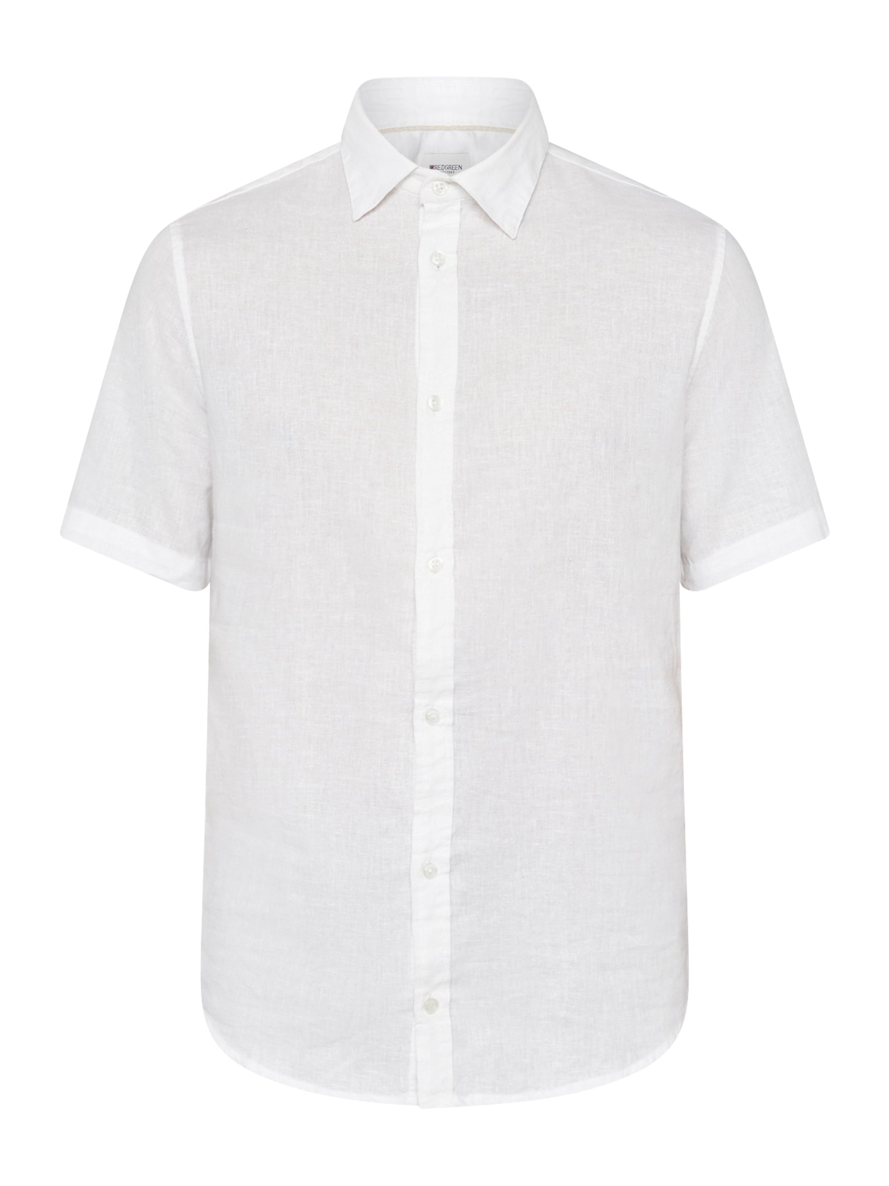 Let og sommerlig herreskjorte i bomulds- og hørblanding med et afslappet, velklædt udtryk. Den korte ærmelængde og åndbare kvalitet gør skjorten ideel til varme dage.