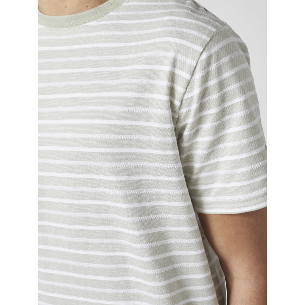 Afslappet herre-T-shirt i blød bomuldsblanding med et klassisk, stribet udtryk. Den lette kvalitet og behagelige pasform gør T-shirten velegnet til hverdagsbrug og afslappede sommerlooks.