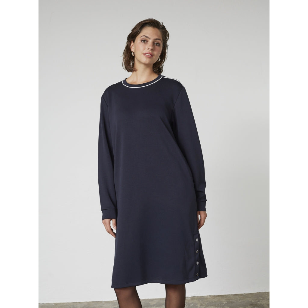 En enkel og blød sweatkjole med rund hals og lange ærmer. Den afslappede pasform giver bevægelsesfrihed og komfort, mens detaljen i siden tilføjer et diskret løft. En hverdagsfavorit, der fungerer året rundt.