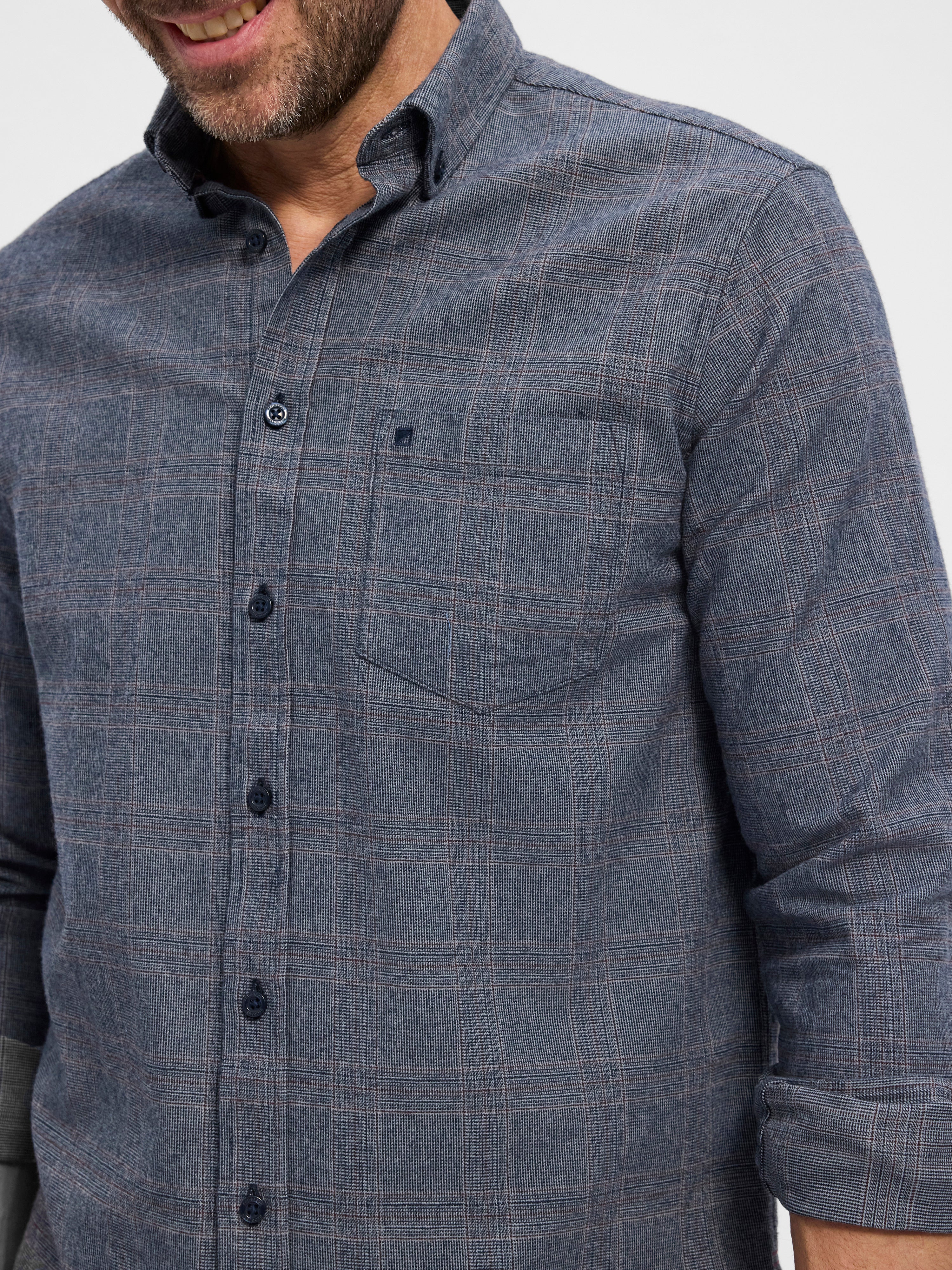 Langærmet skjorte i regular fit med diskret mønster. Lavet i 100% bomuld – behagelig og nem at bruge til hverdag.