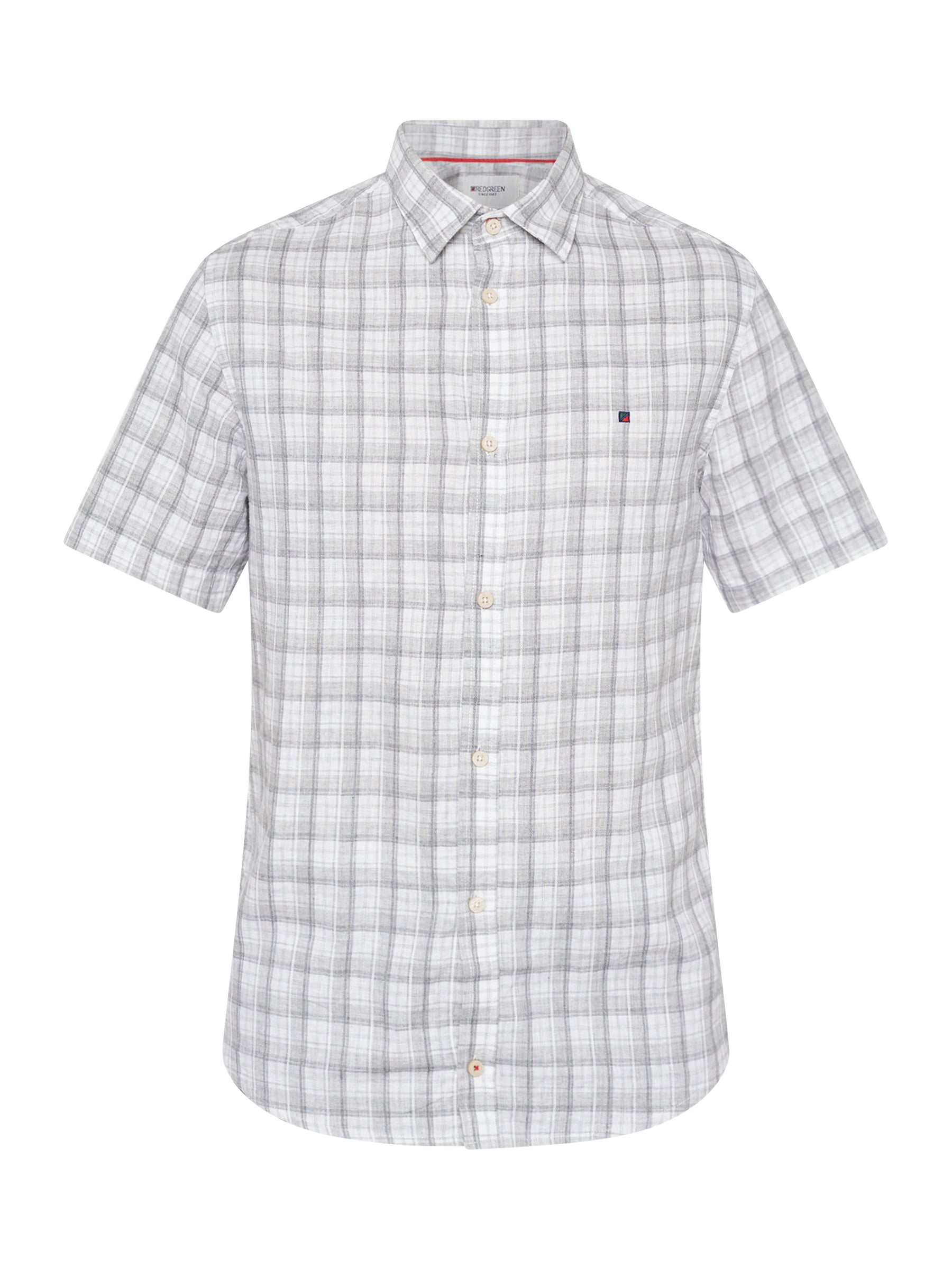 Let og sommerlig herreskjorte i bomulds- og hørblanding med et klassisk, ternet udtryk. En behagelig skjorte med kort ærme og god åndbarhed, velegnet til varme dage og afslappet hverdagsbrug.