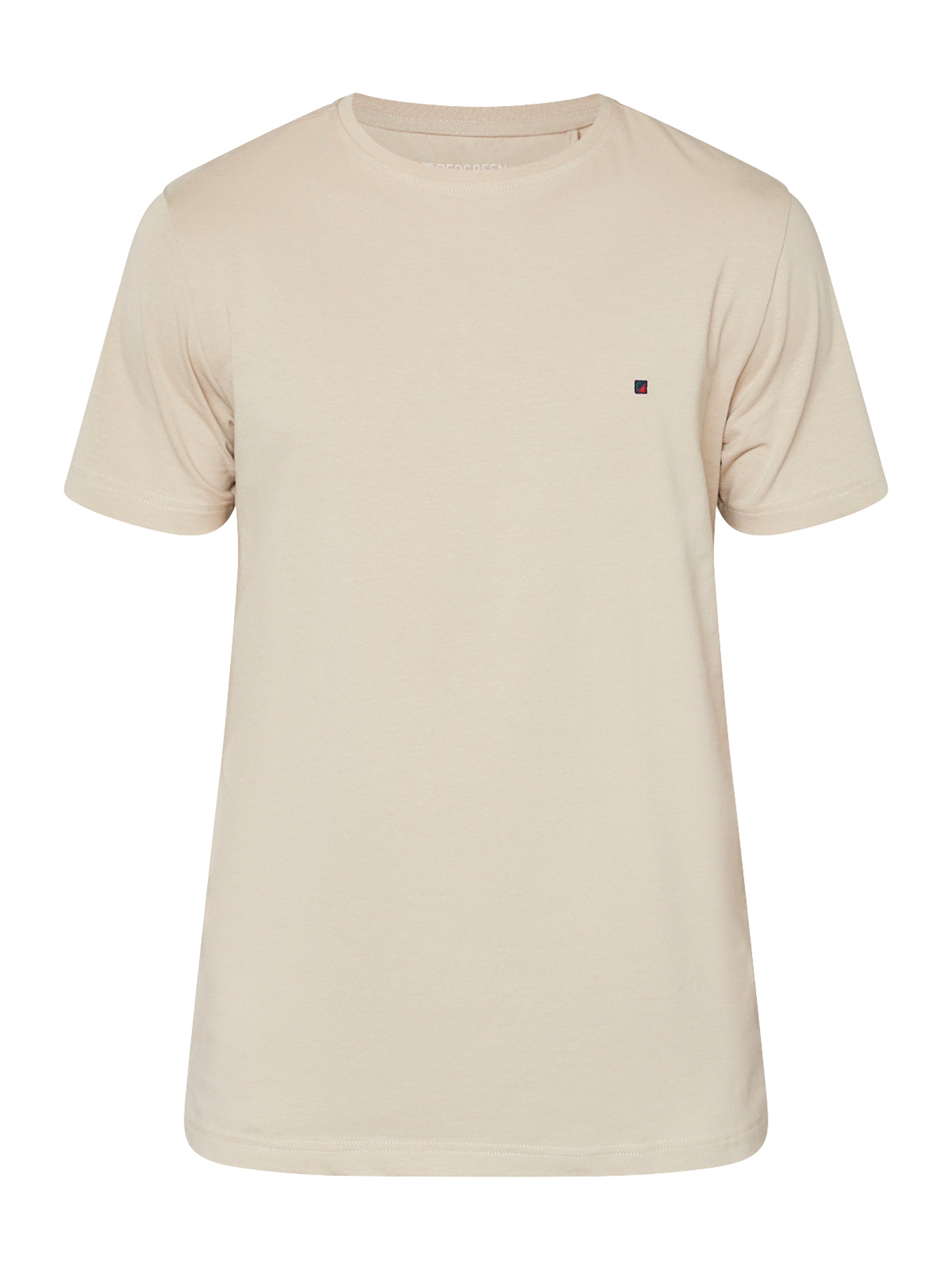 Klassisk herre-T-shirt i blød bomuldsblanding med let stræk og et rent, tidløst udtryk. Den behagelige kvalitet og fleksible pasform gør T-shirten velegnet til hverdagsbrug og afslappede looks.