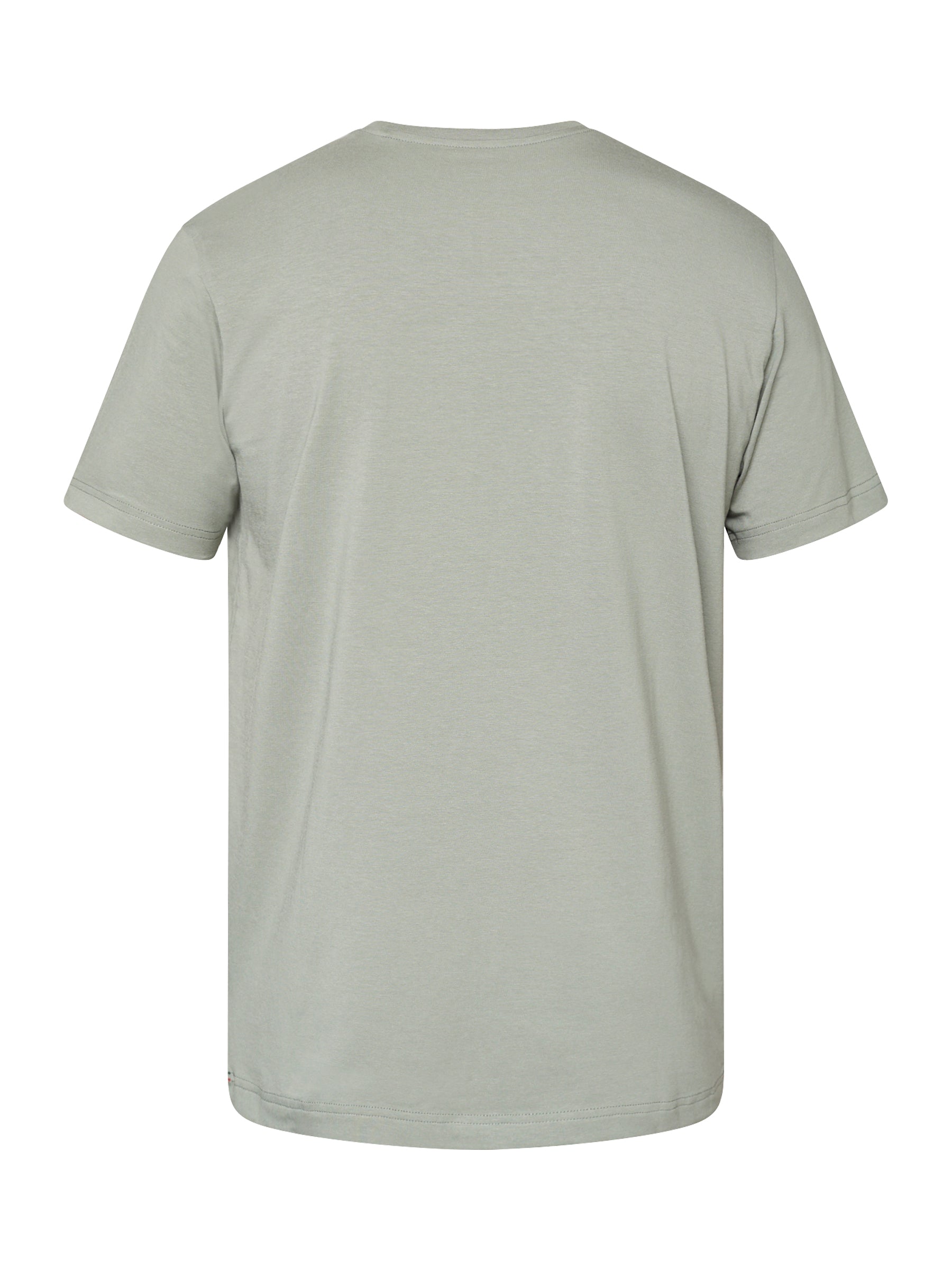 Klassisk herre-T-shirt i blød bomuldsblanding med let stræk og et rent, tidløst udtryk. Den behagelige kvalitet og fleksible pasform gør T-shirten velegnet til hverdagsbrug og afslappede looks.