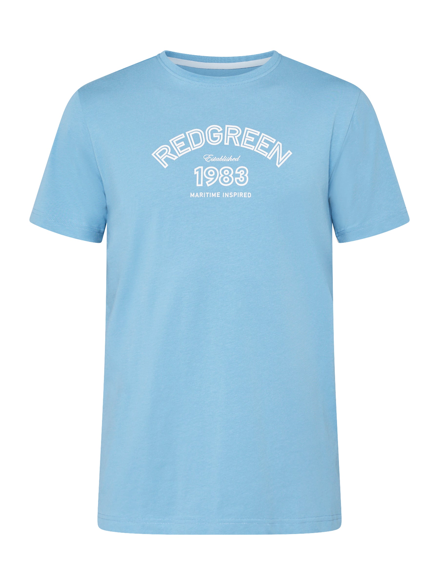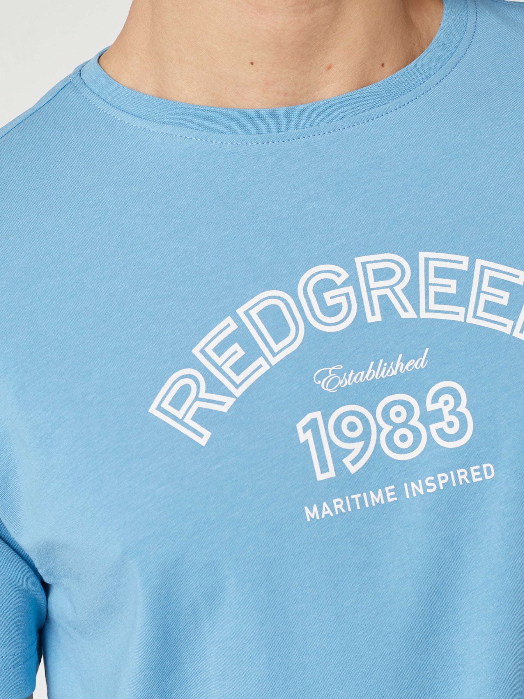 Afslappet herre-T-shirt i blød bomuldsblanding med stræk og et grafisk print på brystet. Den komfortable kvalitet og rene pasform gør T-shirten velegnet til hverdagsbrug og afslappede looks.