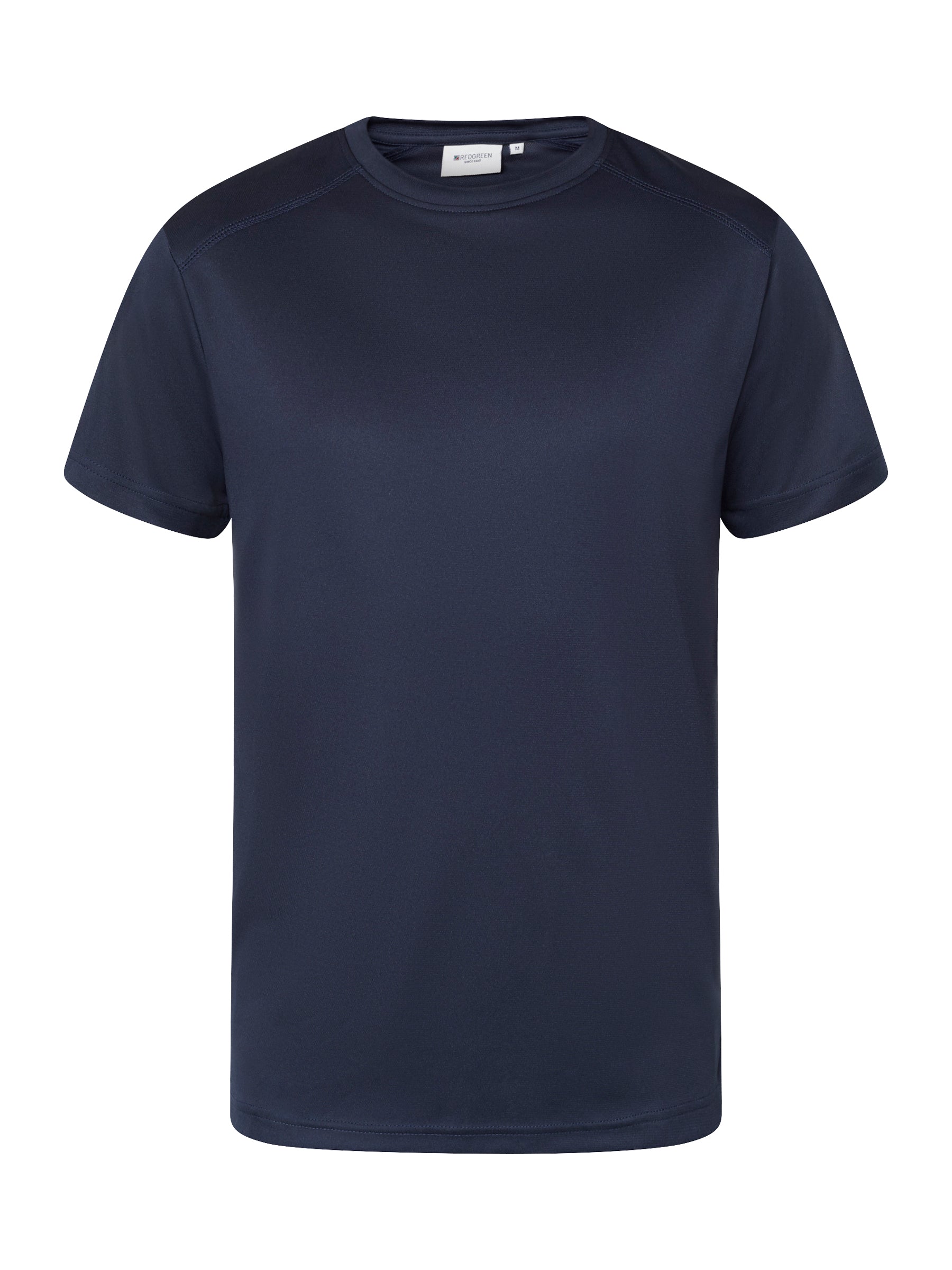 Let og funktionel herre-T-shirt i 100% polyester med et rent, sporty udtryk. Den åndbare kvalitet og behagelige pasform gør T-shirten velegnet til både hverdagsbrug og aktive dage.