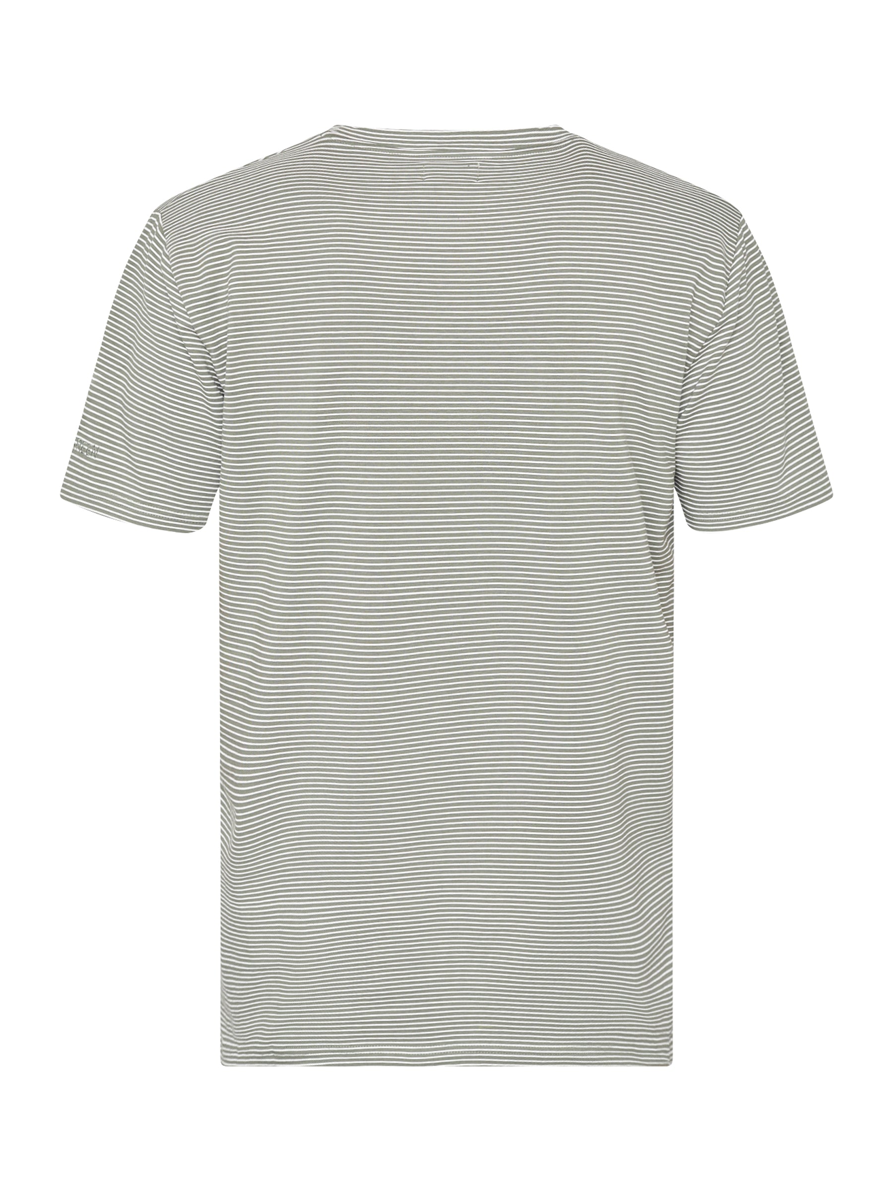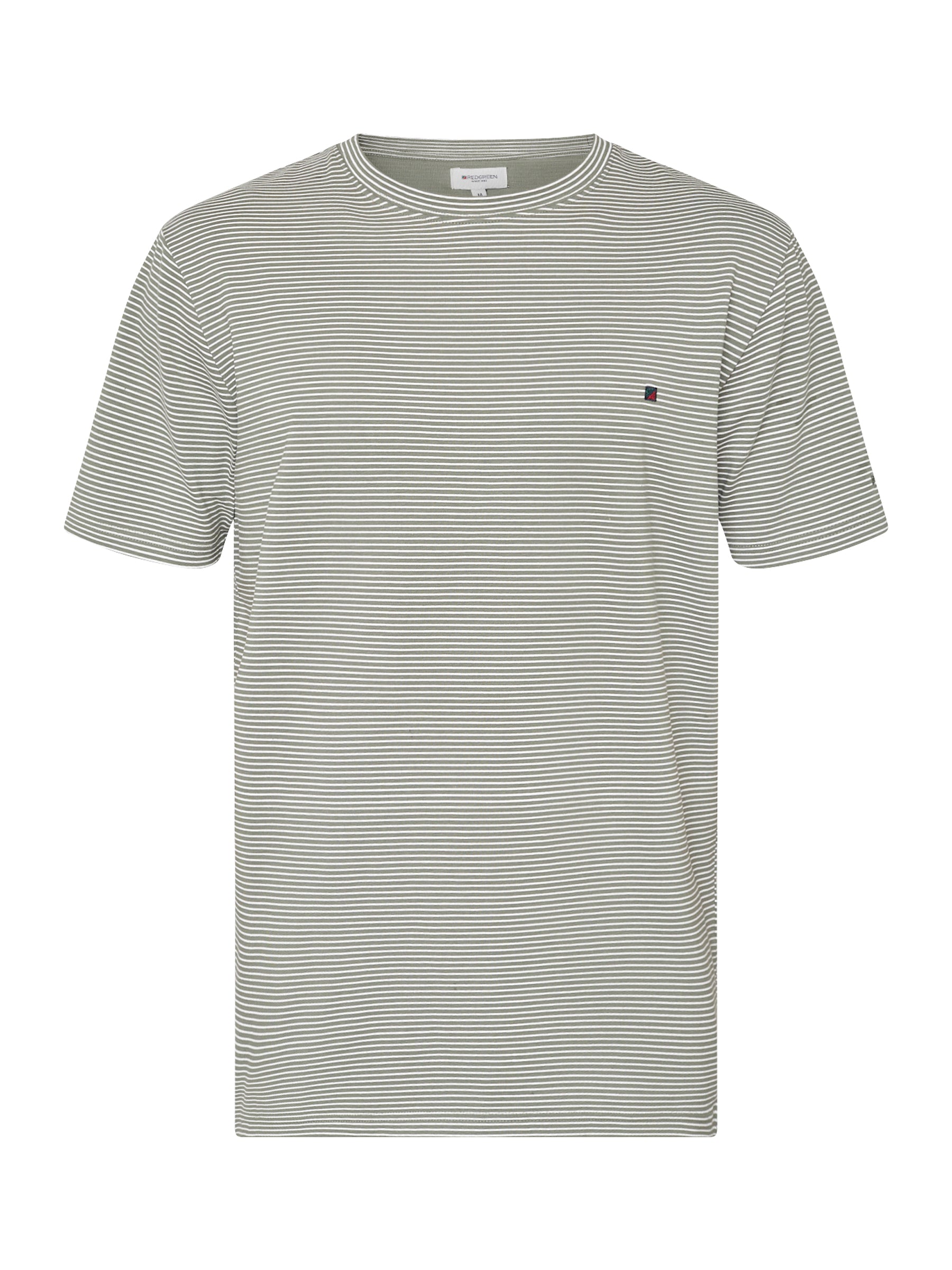 Afslappet herre-T-shirt i blød bomuldsblanding med stræk og et klassisk, stribet udtryk. Den lette kvalitet og komfortable pasform gør T-shirten velegnet til hverdagsbrug og afslappede sommerlooks.