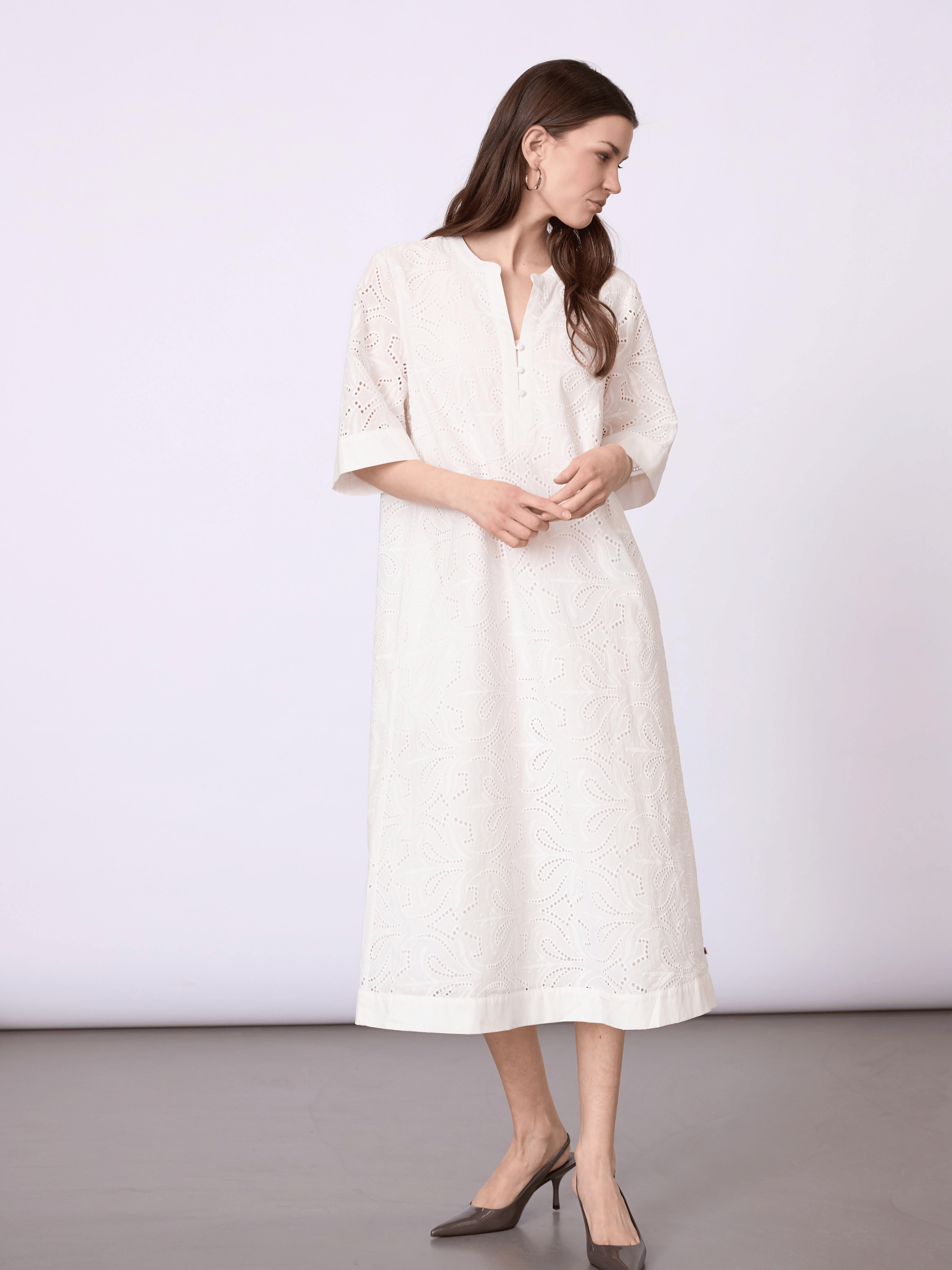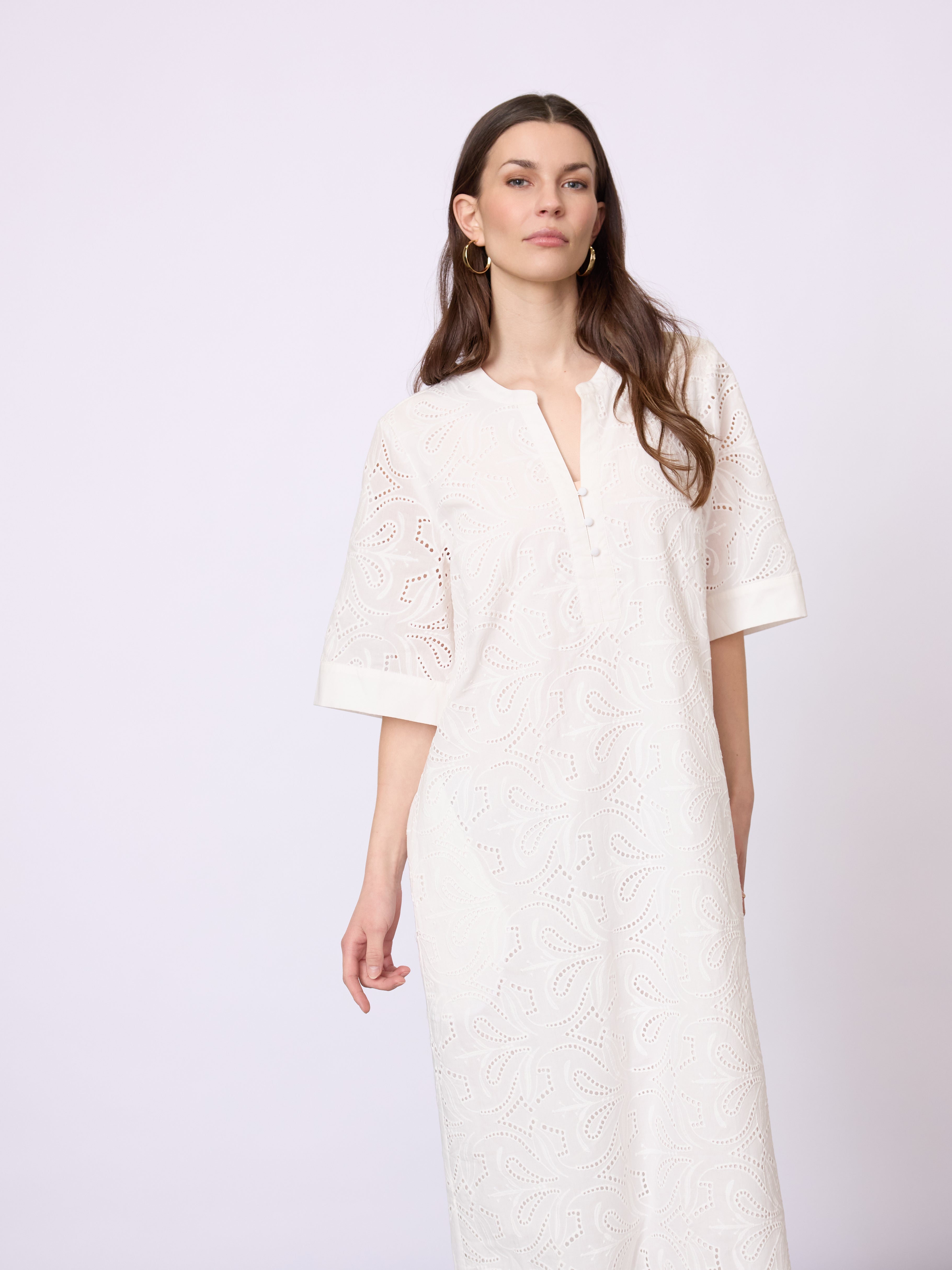Elegant kjole i 100% bomuld med smukt broderet mønster og et let, luftigt udtryk. Darcy har en afslappet pasform og fungerer perfekt til sommerens varme dage og lyse anledninger.
