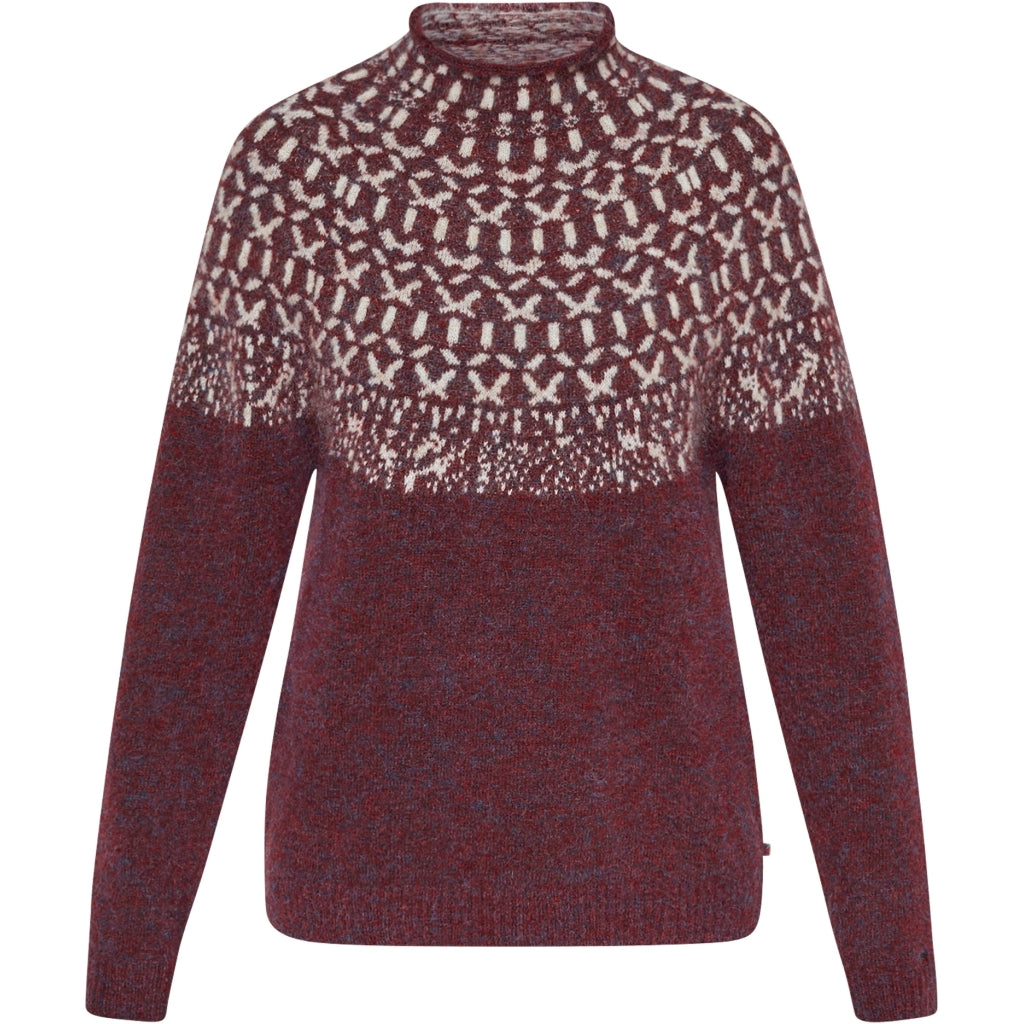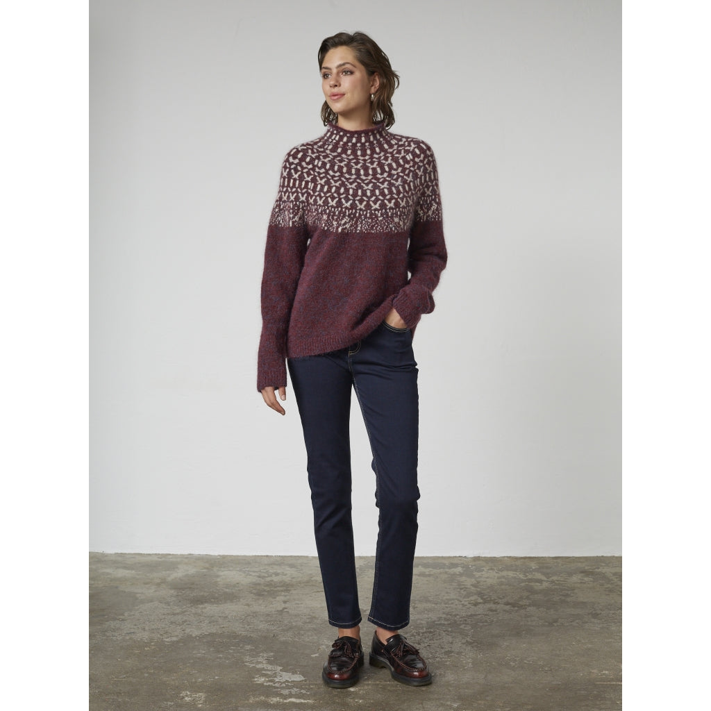 Jesebel Knit har et nordisk mønster og en blød, varm kvalitet. En klassisk strik med høj hals og afslappet pasform – perfekt til kolde dage.