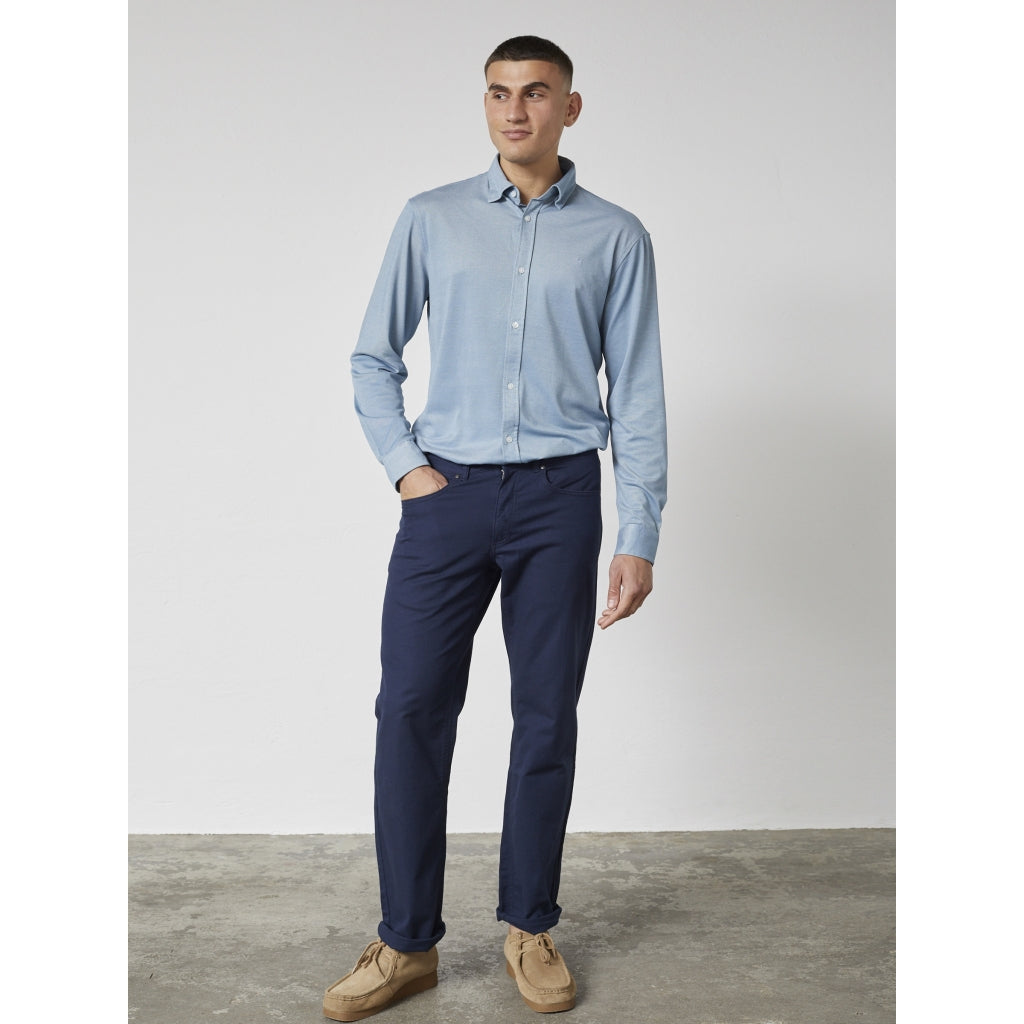 Klassiske herrebukser i bomuldsblanding med let stræk og et rent, tidløst udtryk. Designet til hverdagsbrug med behagelig pasform og god bevægelsesfrihed, der fungerer både afslappet og mere velklædt.