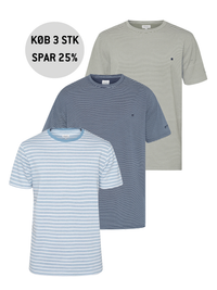 Denne 3-pak kombinerer klassiske striber med en komfortabel pasform og blød kvalitet. Et sikkert valg til hverdagen – nem at style med jeans, shorts eller under en skjorte.